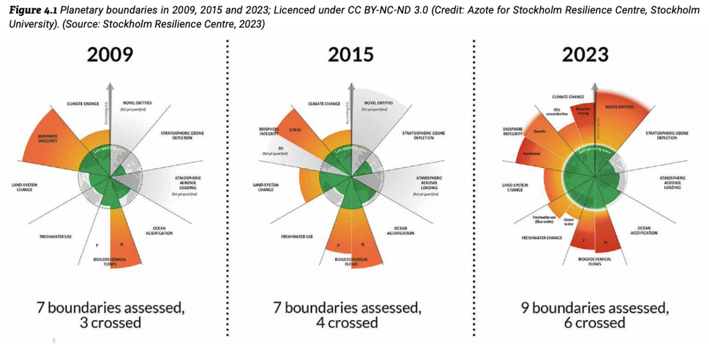 Le ministère de la transition écologique a même un propre site pour ces 9 limites. Je vous incite très fortement de les parcourir un peu, il y a le contexte historique et la situation en 2015. Ce n’est donc pas encore un autre truc tiré par le chapeau des écologistes extrémistes. Plusieurs indicateurs ont pu être mis en place pour ces neufs limites planétaires. Il est inquiétant et consternant de voir que nous avons déjà réussi à dépasser les 6 premières limites.