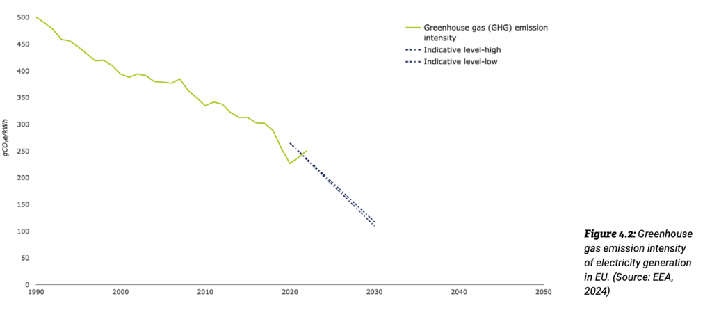 Un autre argument mis en avant dans certains articles et réponses au projet de CALITOM est que la teneur en carbone du réseau électrique dans l’UE diminue. De moins en moins de combustibles fossiles sont utilisés et sont remplacés par des énergies renouvelables ou du nucléaire. Cette tendance va continuer et par conséquence, l’incinération aura un impact négatif proportionnellement toujours plus important dans l’avenir.